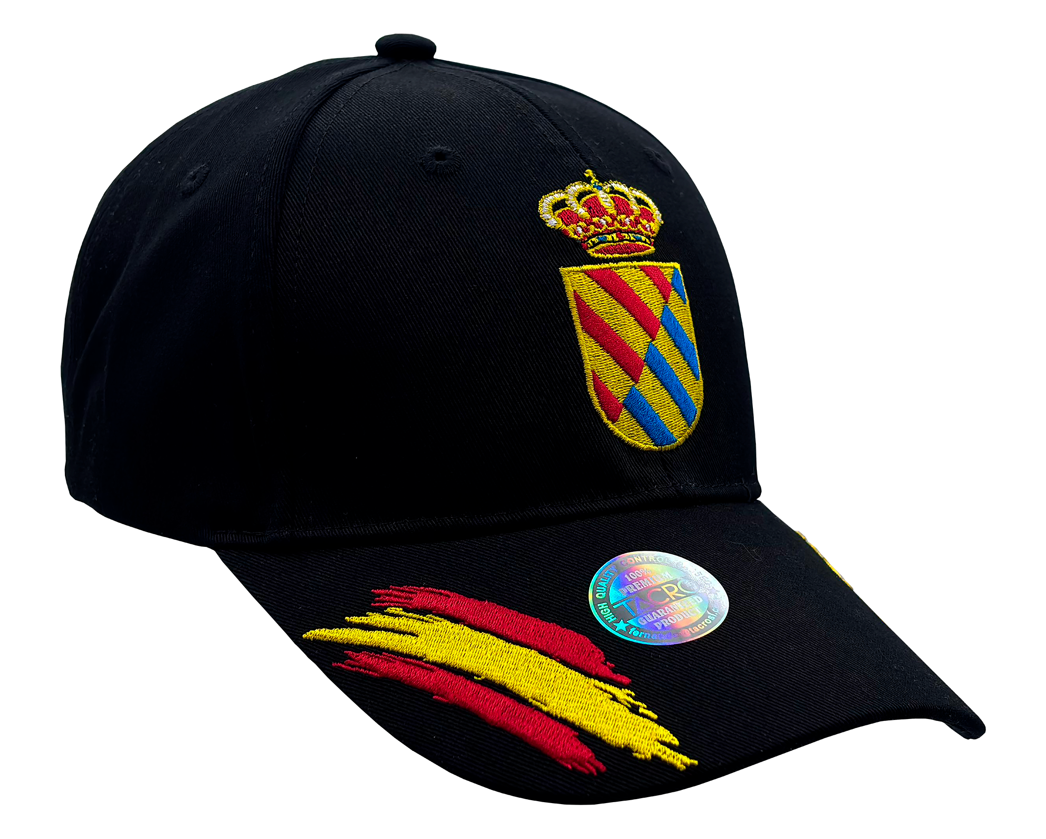 - BORDADO DE CALIDAD: Emblema distintivo en colores amarillo, rojo y azul, con corona real en la parte superior del escudo