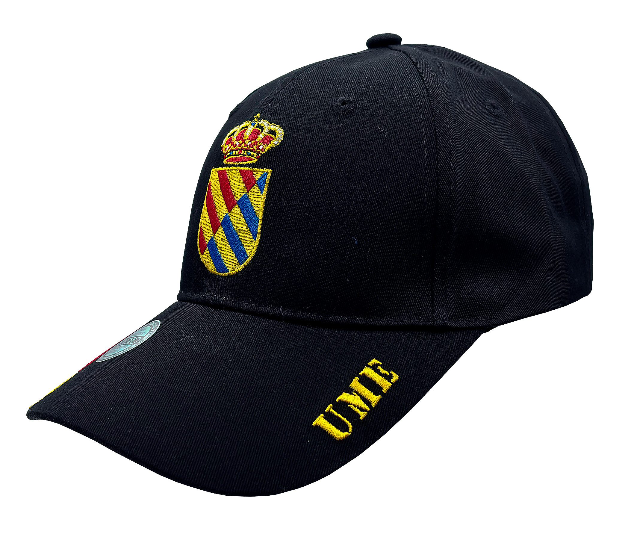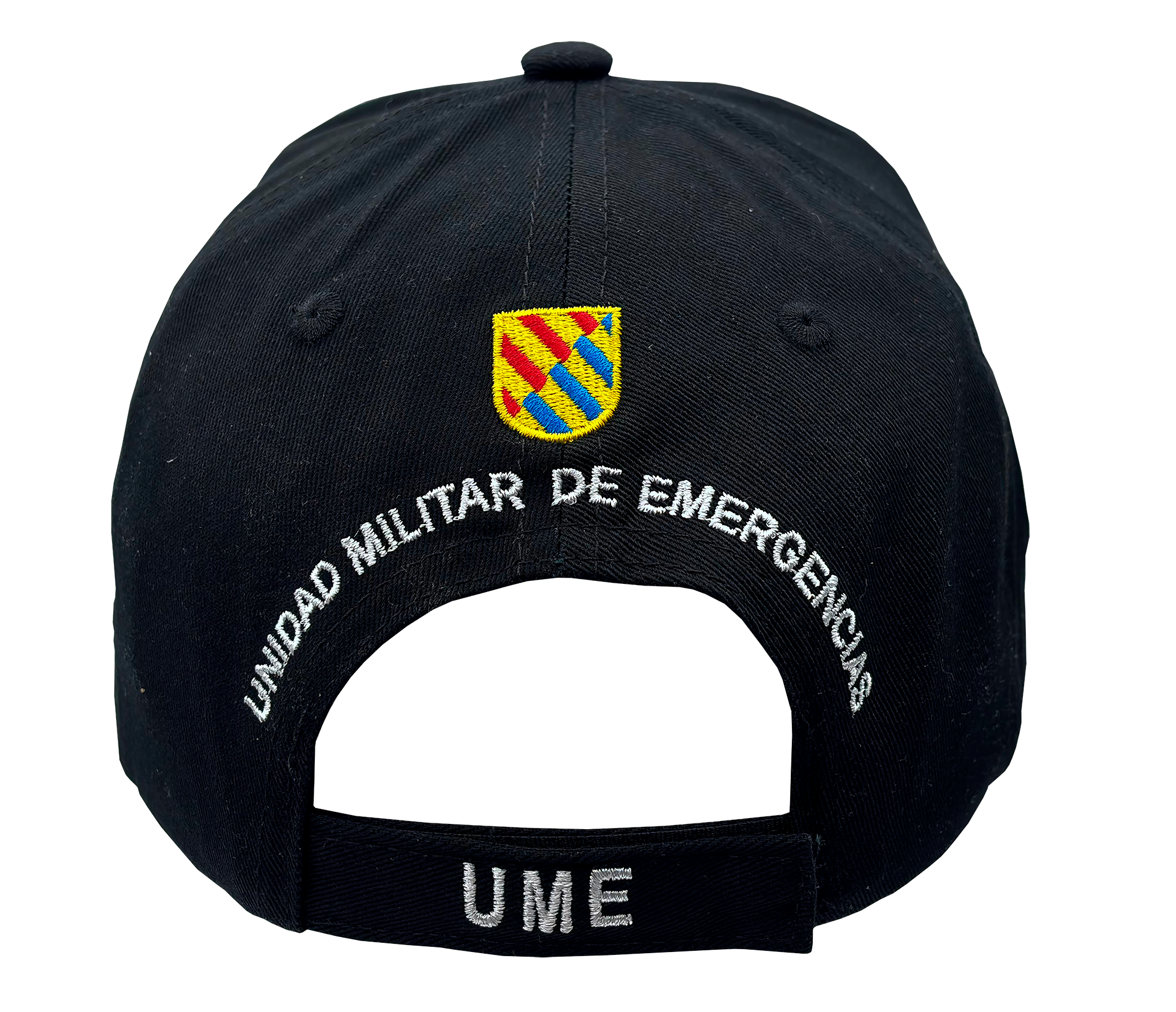 - DISEÑO OFICIAL: Gorra negra oficial de la UME (Unidad Militar de Emergencias) con el escudo real y corona bordados en detalle